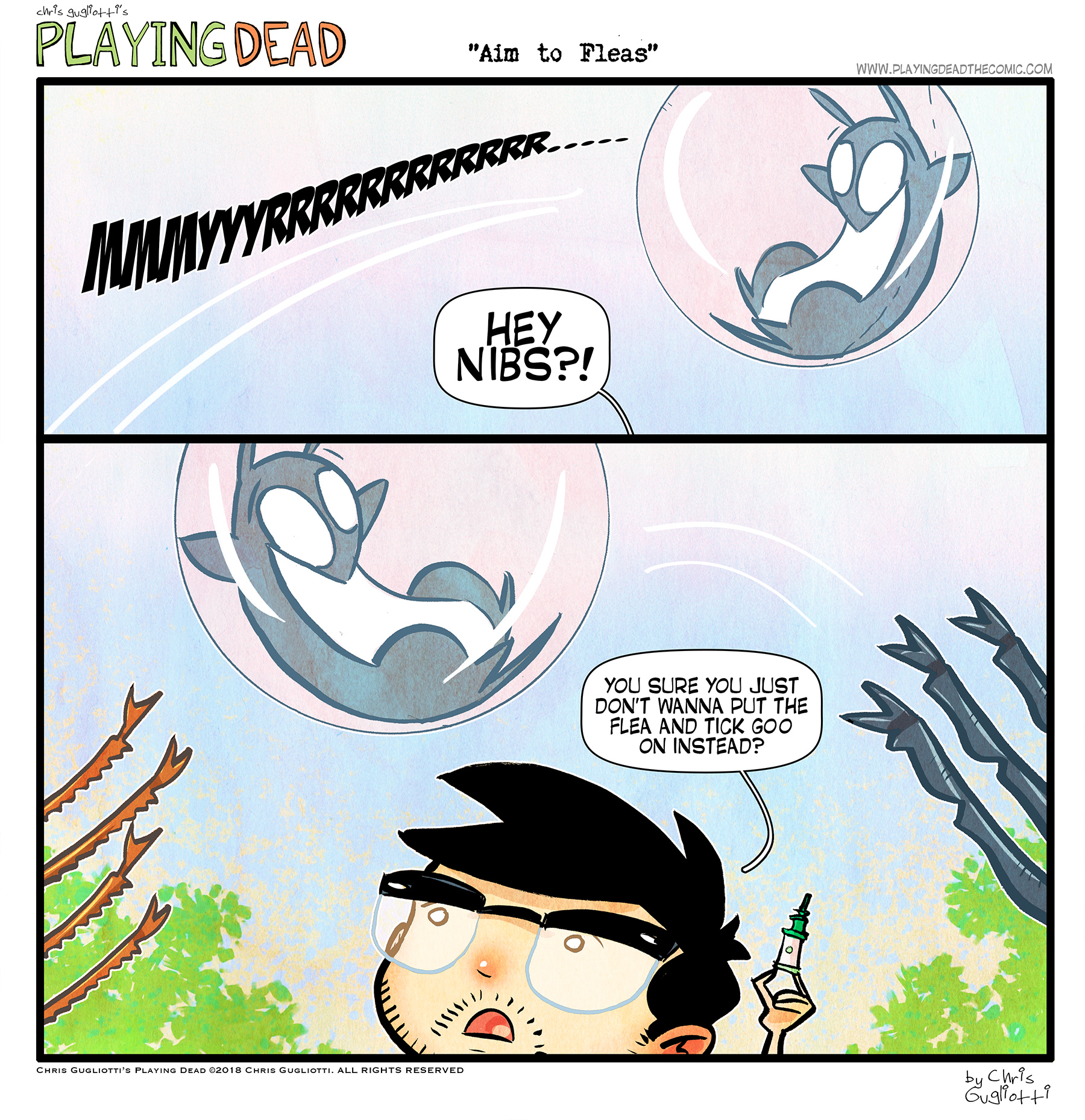 Aim to Fleas by cgugliotti on May 30, 2018 at 9:00 am Chapter: comicsCharacters: chris In which Nibbles must choose how he wants to spend his summer. └ Tags: autobiographical, bugs, chris gugliotti, coffee, comic, comic strip, dachshund, desert, dog, fantasy, fleas, fles, friendship, hazelnut, heat, iced coffe, icedcoffee, introspection, life, man's best friend, man-child, mirage, nibbles, nibbles the dachshund, playing dead, straned, thirsty, tick, ticks, web comic, Web comics, webcomic, webcomics, wtf