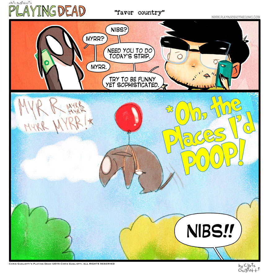 Favor Country by cgugliotti on July 16, 2015 at 9:00 am Chapter: comics In which Nibs goes on an adventure. └ Tags: anxiety, autobiographical, chris gugliotti, comic, comic strip, dachshund, dog, friendship, introspection, life, man's best friend, man-child, nibbles, nibbles draws, playing dead, poop, web comic, Web comics, webcomic, webcomics