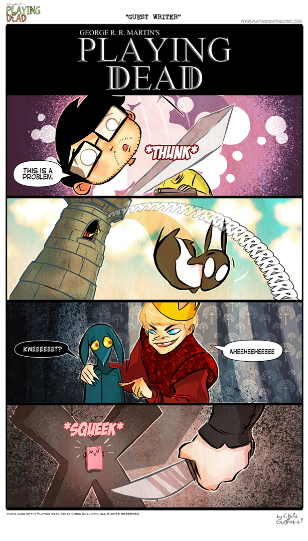 Guest Writer by cgugliotti on April 8, 2014 at 8:08 am Chapter: comics In which we welcome guest writer George RR Martin. (not really) └ Tags: autobiographical, chris gugliotti, comic, comic strip, dachshund, dog, fantasy, friendship, game of thrones, george r.r. martin, hbo, life, man's best friend, man-child, playing dead, web comic, Web comics, webcomic, webcomics