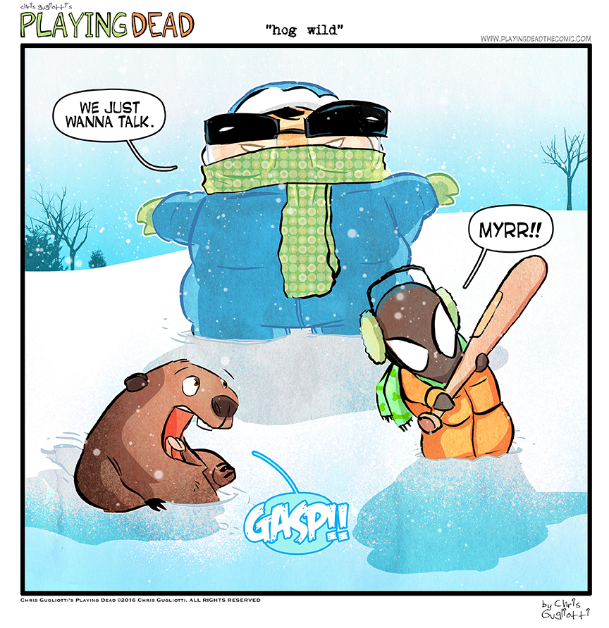 Hog Wild by cgugliotti on February 2, 2016 at 10:11 am Chapter: comics In which it had to be done └ Tags: anxiety, autobiographical, chris gugliotti, comic, comic strip, dachshund, dog, friendship, groundhog, groundhog day, introspection, life, man's best friend, nibbles, nibbles the dachshund, playing dead, web comic, webcomic, webcomics, wtf