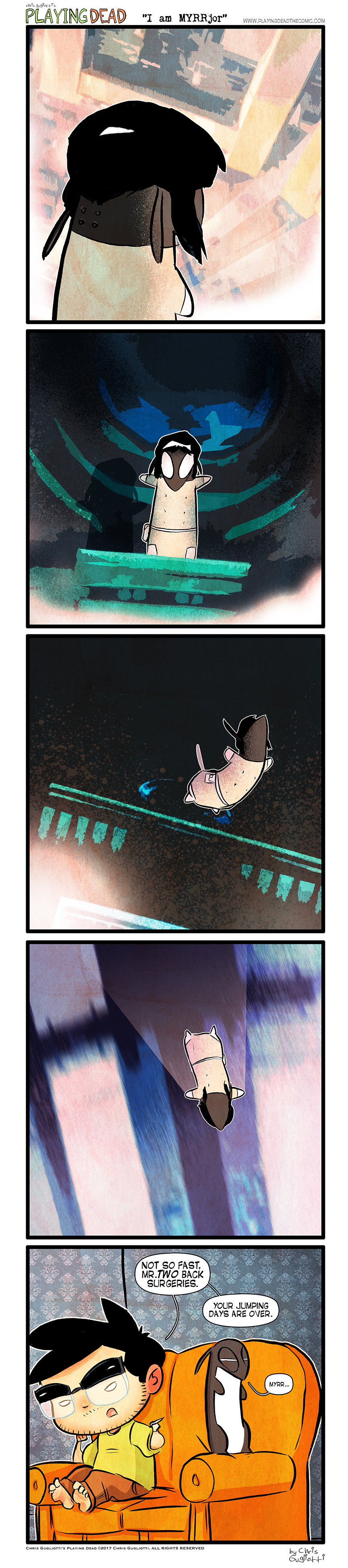 I am Myrrjor by cgugliotti on March 28, 2017 at 9:00 am Chapter: comicsCharacters: chris, nibbles In which Nibs is forced to think before he leaps. └ Tags: anime, anxiety, autobiographical, chris gugliotti, comic, comic strip, cosplay, dachshund, dog, fantasy, friendship, ghost in the shell, halloween adventure, i am major, introspection, Kusanagi, life, major, major Motoko Kusanagi, man's best friend, manga, Motoko, Motoko Kusanagi, nibbles, nibbles the dachshund, playing dead, science fiction, web comic, Web comics, webcomic, webcomics, wtf