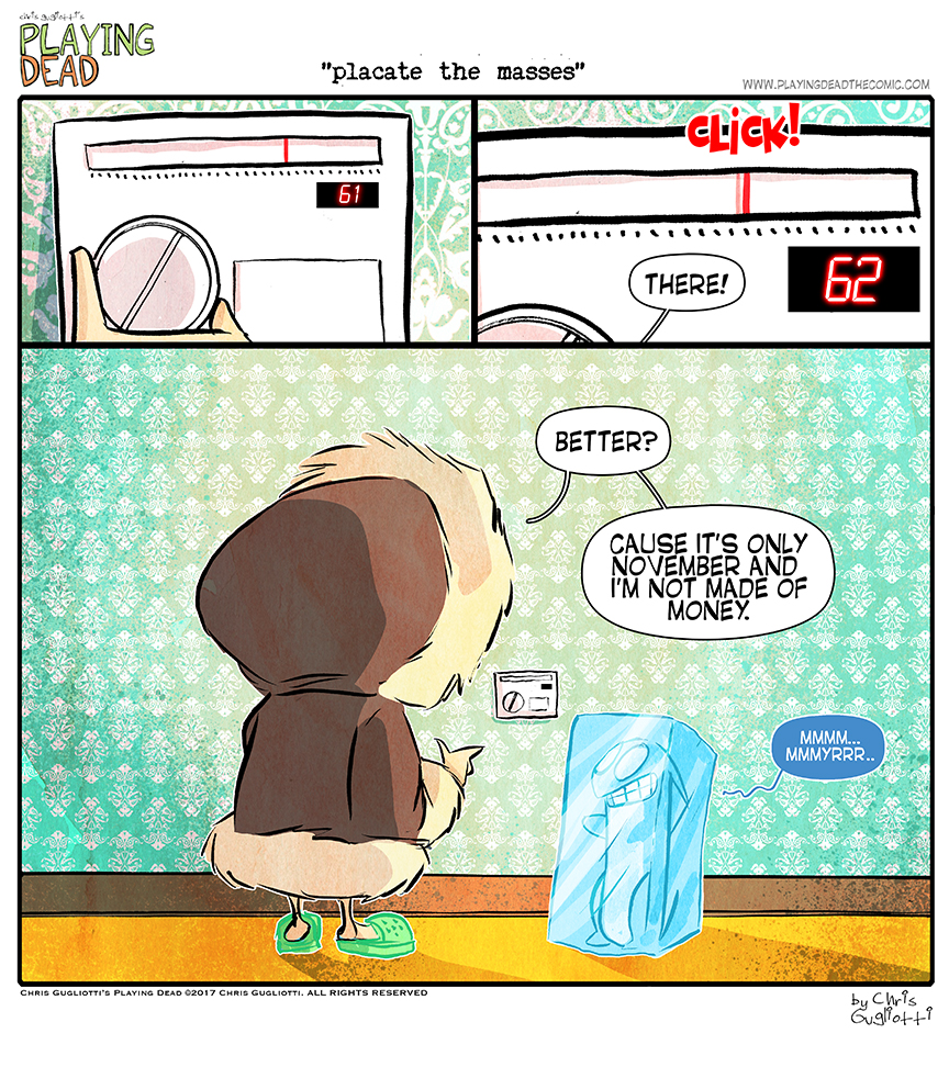 Placate the Masses by cgugliotti on November 1, 2017 at 9:00 am Chapter: comicsCharacters: chris, nibbles In which the line is drawn. └ Tags: autobiographical, autumn, chris gugliotti, comic, comic strip, dachshund, dog, fall, friendship, introspection, life, man's best friend, man-child, nibbles, nibbles the dachshund, playing dead, web comic, Web comics, webcomic, webcomics, winter, wtf