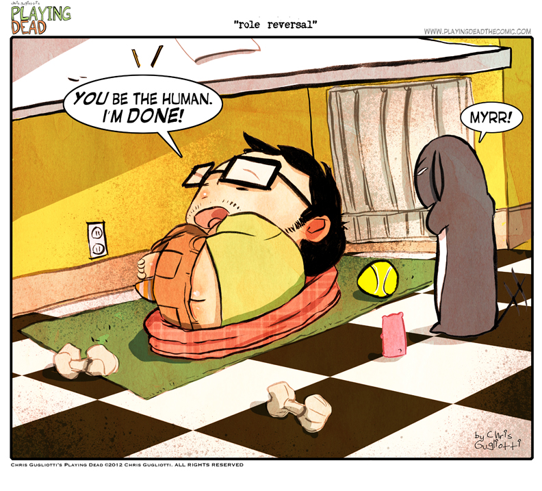 Role Reversal by cgugliotti on October 15, 2012 at 8:35 am Chapter: comics In which we learn that the grass is always greener when you have a tail. └ Tags: anxiety, autobiographical, chris gugliotti, comic, comic strip, dacshund, daschund, dog, friendship, introspection, life, man's best friend, mr bear, web comic, webcomic