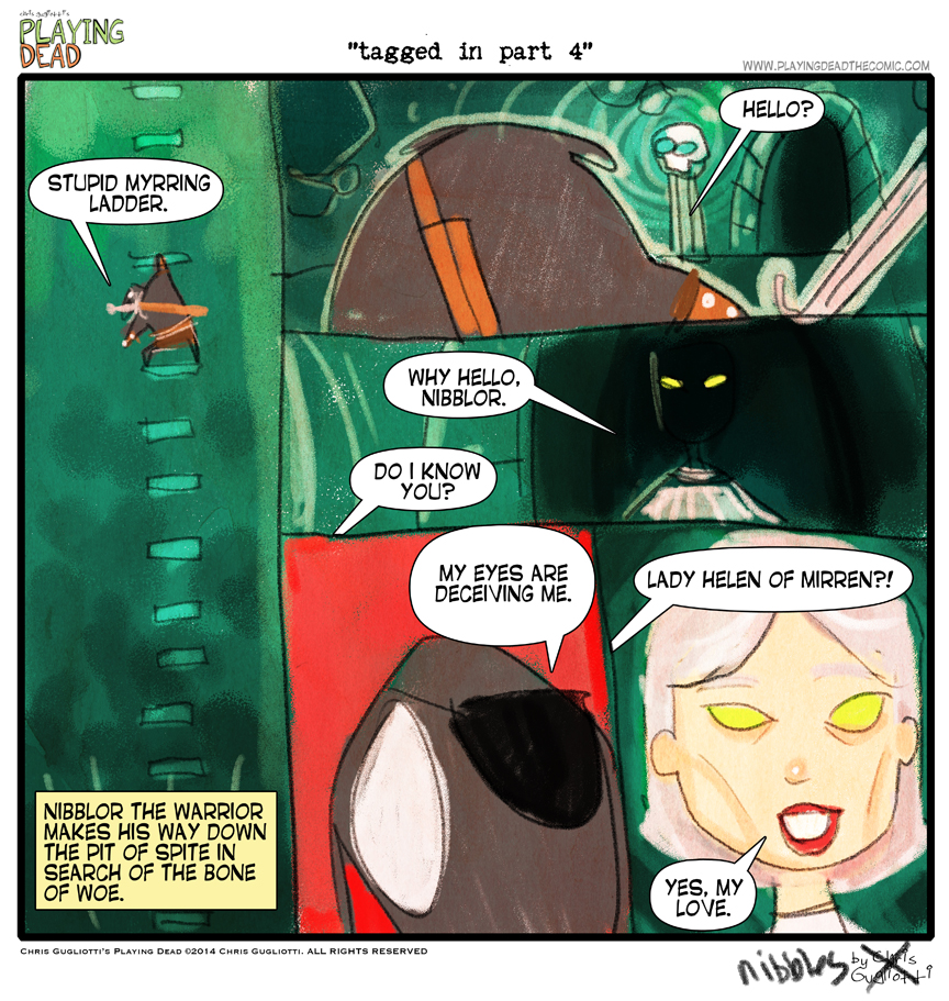Tagged In part 4 by cgugliotti on August 7, 2014 at 8:12 am Chapter: comics In which Nibblor partakes in a quest. └ Tags: adventure, autobiographical, chris gugliotti, comic, comic strip, dachshund, dog, fantasy, hand drawn, man's best friend, nibbles, playing dead, web comic, Web comics, webcomic, webcomics