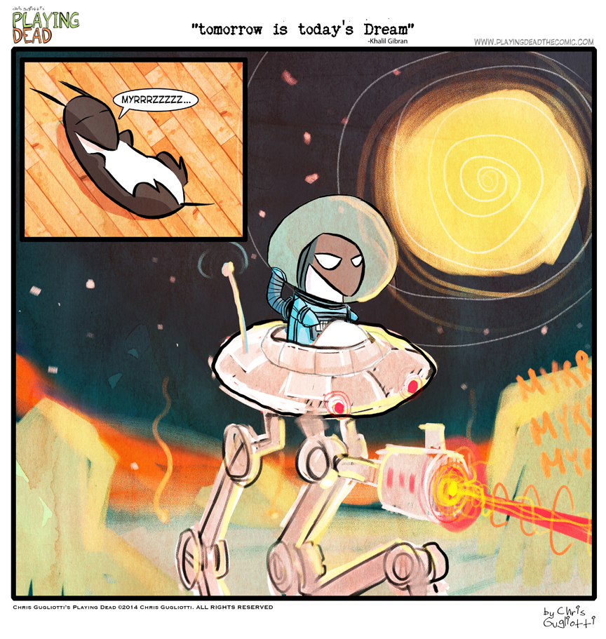 “Tomorrow is Today’s Dream” by cgugliotti on February 27, 2014 at 8:47 am Chapter: comics In which the motivations of all dachshunds, subconsciously, come out to shine. And destroy. └ Tags: autobiographical, chris gugliotti, comic, comic strip, dachshund, dog, dream, dreaming, dreams, hand drawn, laser beams, life, man's best friend, nibbles, outer space, playing dead, sci fi, science fiction, space, Star wars, UFO, web comic, Web comics, webcomic, webcomics