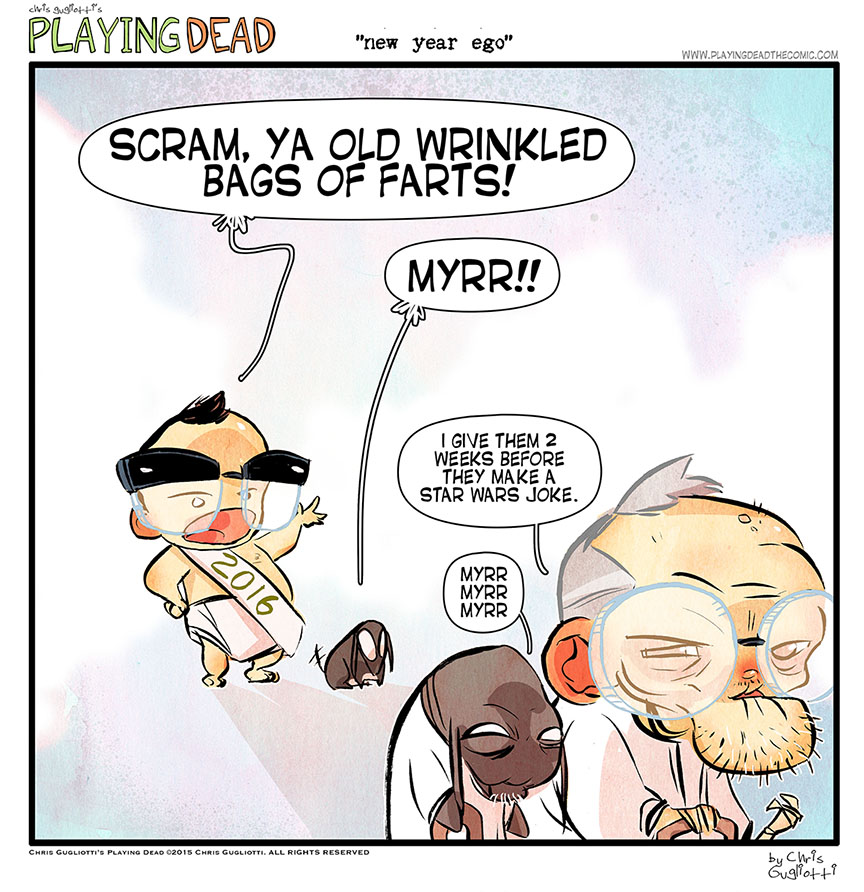 New Year Ego by cgugliotti on December 31, 2015 at 9:00 am Chapter: comics In which it’s out with the olds. └ Tags: 2016, autobiographical, baby new year, chris gugliotti, comic, comic strip, dachshund, dog, father time, friendship, happy new year, happy new years, introspection, life, man's best friend, man-child, new year, new years day, nibbles, nibbles the dachshund, playing dead, web comic, Web comics, webcomic, webcomics, wtf Comments Off on New Year Ego