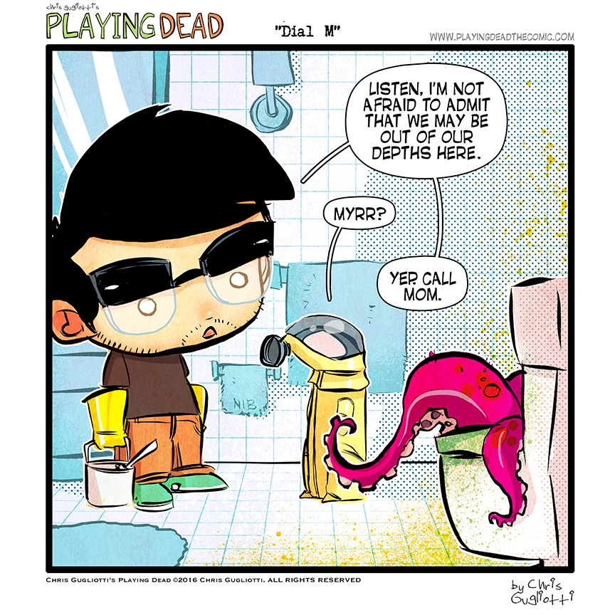 Dial M by cgugliotti on September 15, 2016 at 9:00 am Chapter: comicsCharacters: chris, nibbles In which we’re just not that brave. └ Tags: anxiety, autobiographical, bathroom, chris gugliotti, cleaning, comic, comic strip, dachshund, dog, friendship, hazmat, life, man's best friend, man-child, mom, mother, nibbles, nibbles the dachshund, playing dead, toilet, toilet humor, web comic, Web comics, webcomic, webcomics, wtf Comments Off on Dial M
