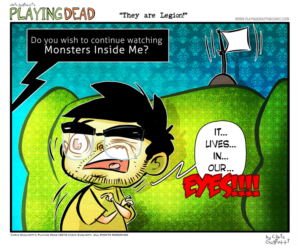 They are Legion by cgugliotti on February 28, 2018 at 9:00 am Chapter: comicsCharacters: chris, nibbles In which our bodies are gross and this may be enough TV for awhile. └ Tags: anxiety, autobiographical, chris gugliotti, comic, comic strip, couchpotato, dachshund, dog, friendship, life, man's best friend, man-child, monsters inside me, nibbles, nibbles the dachshund, parasites, playing dead, television, tv, web comic, Web comics, webcomic, webcomics, wtf Comments Off on They are Legion