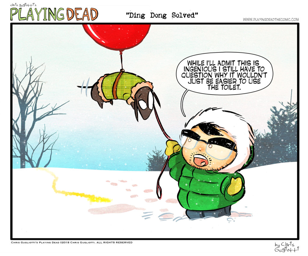 Ding Dong Solved by cgugliotti on January 31, 2018 at 9:00 am Chapter: comicsCharacters: chris, nibbles In which Nibbles has a solution. └ Tags: autobiographical, chris gugliotti, comic, comic strip, dachshund, dig dong deep, dog, friendship, introspection, life, man's best friend, nibbles, nibbles the dachshund, playing dead, snow, web comic, Web comics, webcomic, webcomics, winter, wtf Comments Off on Ding Dong Solved