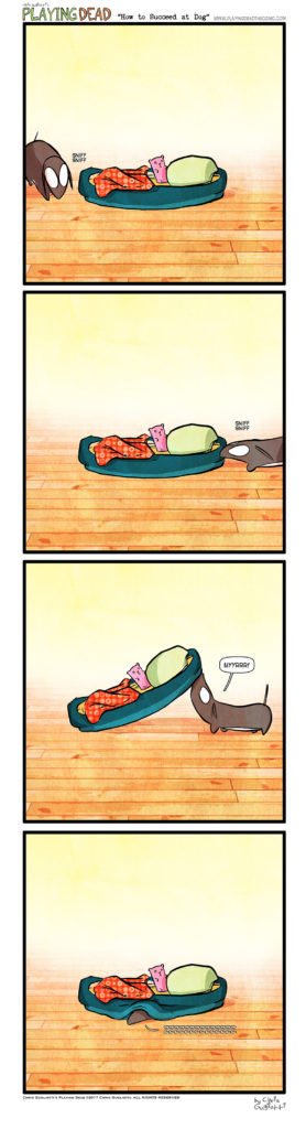 How to Succeed at Dog by cgugliotti on June 15, 2017 at 9:00 am Chapter: comicsCharacters: chris, nibbles In which I don’t think he’s doing it right. └ Tags: autobiographical, chris gugliotti, comic, comic strip, dachshund, dog, dog behavior, friendship, life, man's best friend, nibbles, nibbles the dachshund, playing dead, web comic, Web comics, webcomics, wtf Comments Off on How to Succeed at Dog
