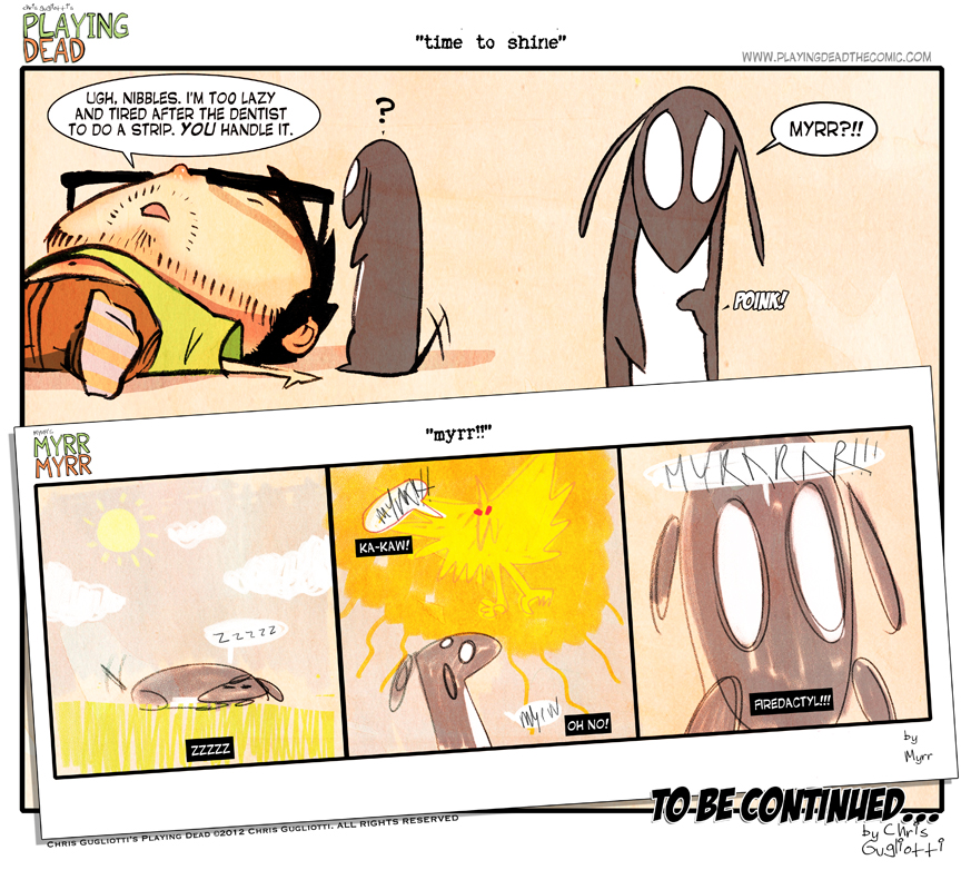 Time to Shine by cgugliotti on November 12, 2012 at 8:07 am Chapter: comics In which nibbles takes over for the week. └ Tags: anxiety, autobiographical, chris gugliotti, comic, comic strip, dacshund, dog, fire-dactyl, friendship, life, man's best friend, nibbles, nibbles draws, web comic, webcomic, wtf Comments Off on Time to Shine