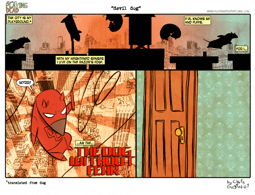 The hound of Hell’s Kitchen by cgugliotti on July 13, 2012 at 3:06 am Chapter: comics └ Tags: Animated, comic, comic strip, Daredevil, Gif, Hell's kitchen, Marvel comics, Matt murdock, web comic, webcomic Comments Off on The hound of Hell’s Kitchen