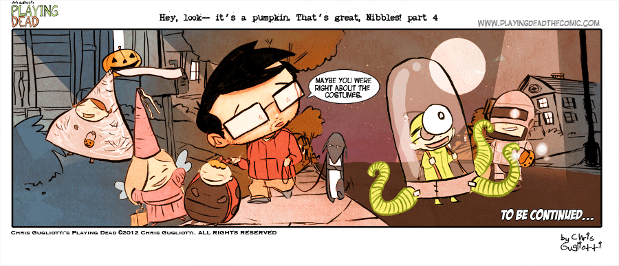 Hey, look– it’s a pumpkin. That’s great, Nibbles! part 4 by cgugliotti on October 23, 2012 at 8:22 am Chapter: comics In which our adventure makes it outside!! └ Tags: Animated, autobiographical, batman, chris gugliotti, comic, comic strip, cosplay, dacshund, daschund, dog, friendship, Gif, great pumpkin, HALLOWEEN, halloween adventure, Hey, kang, life, look-- it’s a pumpkin. That’s great, man's best friend, man-child, nibbles, princess, robocop, robot, rocketeer, trick or treat, web comic, webcomic Comments Off on Hey, look– it’s a pumpkin. That’s great, Nibbles! part 4