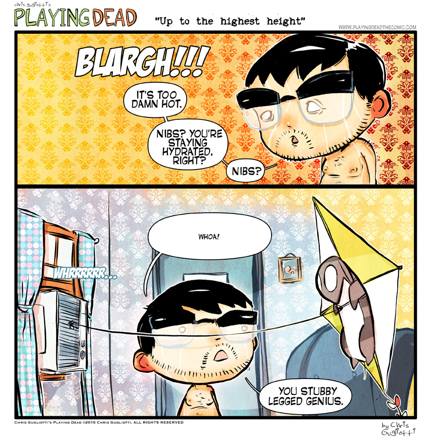 Up to the Highest Heights by cgugliotti on August 6, 2015 at 9:00 am Chapter: comics In which Nibbles is genius. └ Tags: air conditioning, autobiographical, chris gugliotti, comic, comic strip, dachshund, dog, friendship, heat, ingenuity, introspection, life, man's best friend, man-child, nibbles, playing dead, summer, web comic, Web comics, webcomic, webcomics Comments Off on Up to the Highest Heights