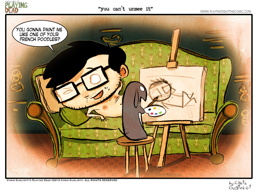 Once you see it by cgugliotti on March 5, 2013 at 8:30 am Chapter: comics You can never unsee it! └ Tags: art, chris gugliotti, comic, comic strip, dacshund, dog, friendship, kate winslet, man's best friend, man-child, nibbles, playing dead, titanic, web comic, webcomic Comments Off on Once you see it