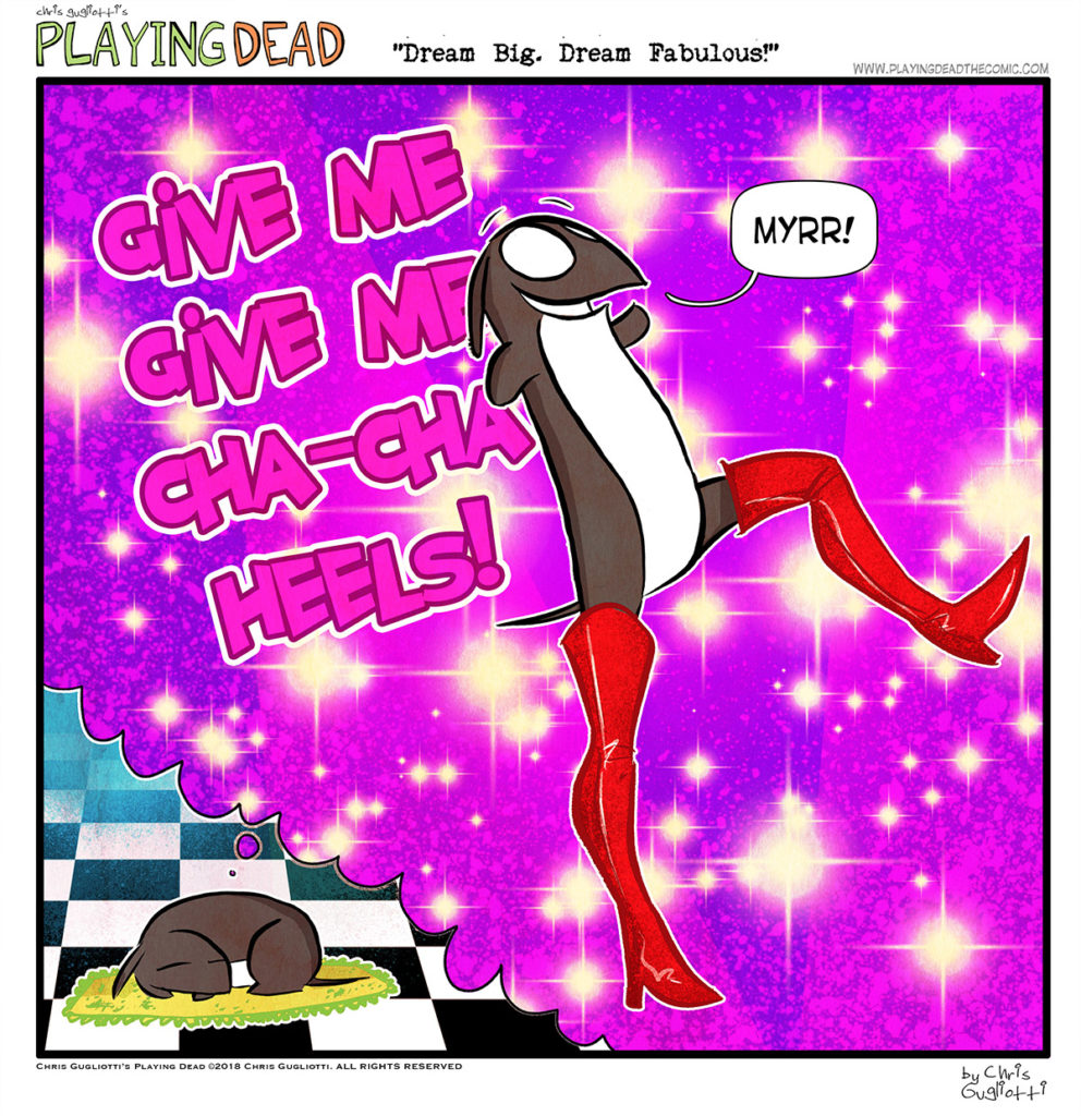 Dream Big, Dream Fabulous! by cgugliotti on April 4, 2018 at 9:00 am Chapter: comicsCharacters: nibbles In which, even in dreams, ya gotta strut! └ Tags: chris gugliotti, comic, comic strip, dachshund, dog, dreaming, dreams, fabulous, fantasy, introspection, kinky boots, life, magic, man's best friend, nibbles, nibbles the dachshund, playing dead, shoes, sleep, web comic, Web comics, webcomic, webcomics, wtf Comments Off on Dream Big, Dream Fabulous!