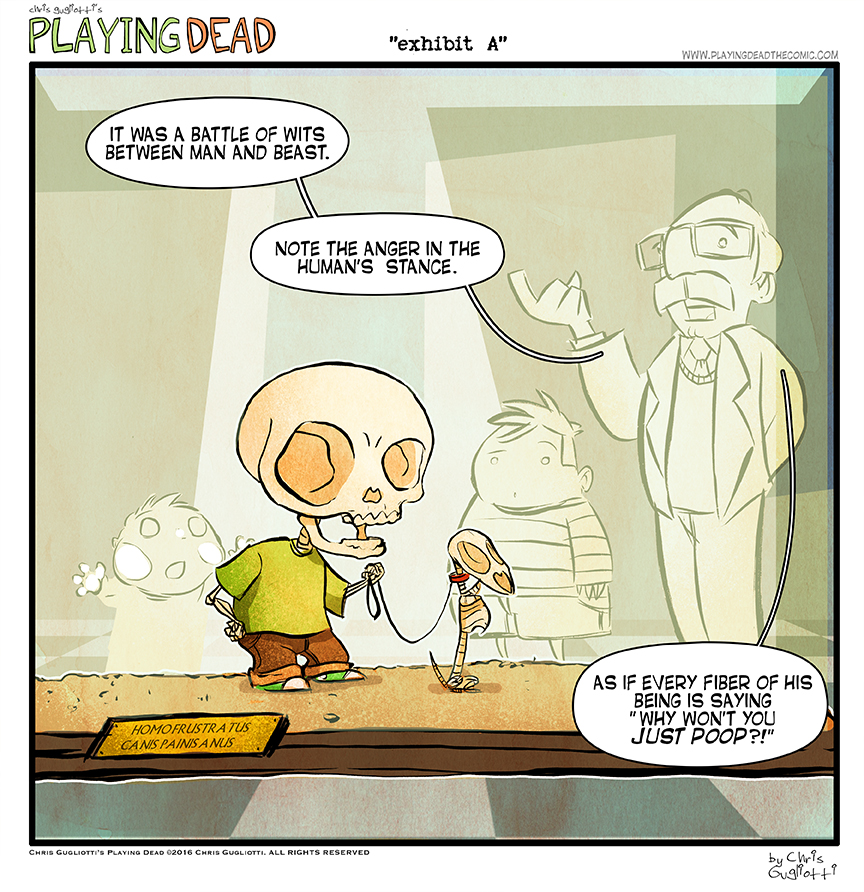 Exhibit A by cgugliotti on January 19, 2016 at 9:00 am Chapter: comics In which we belong in a museum. └ Tags: anxiety, autobiographical, chris gugliotti, comic, comic strip, dachshund, dog, friendship, introspection, learning, life, man's best friend, museum, nibbles, nibbles the dachshund, playing dead, web comic, Web comics, webcomic, webcomics, wtf Comments Off on Exhibit A
