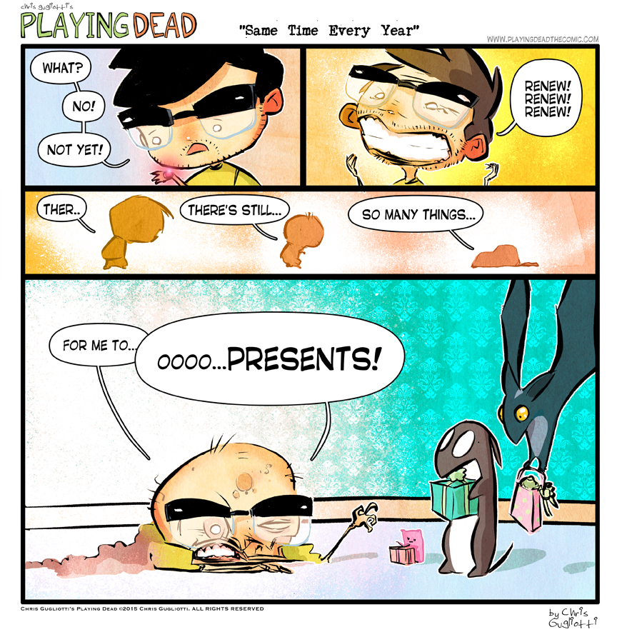 Same Time Every Year by cgugliotti on June 11, 2015 at 9:00 am Chapter: comics In which I add another ring to my trunk. └ Tags: Aging, anxiety, autobiographical, birthday, chris gugliotti, comic, comic strip, dachshund, dog, friendship, happy birthday, introspection, life, logan's run, man's best friend, man-child, nibbles, playing dead, web comic, Web comics, webcomic, webcomics, wtf Comments Off on Same Time Every Year