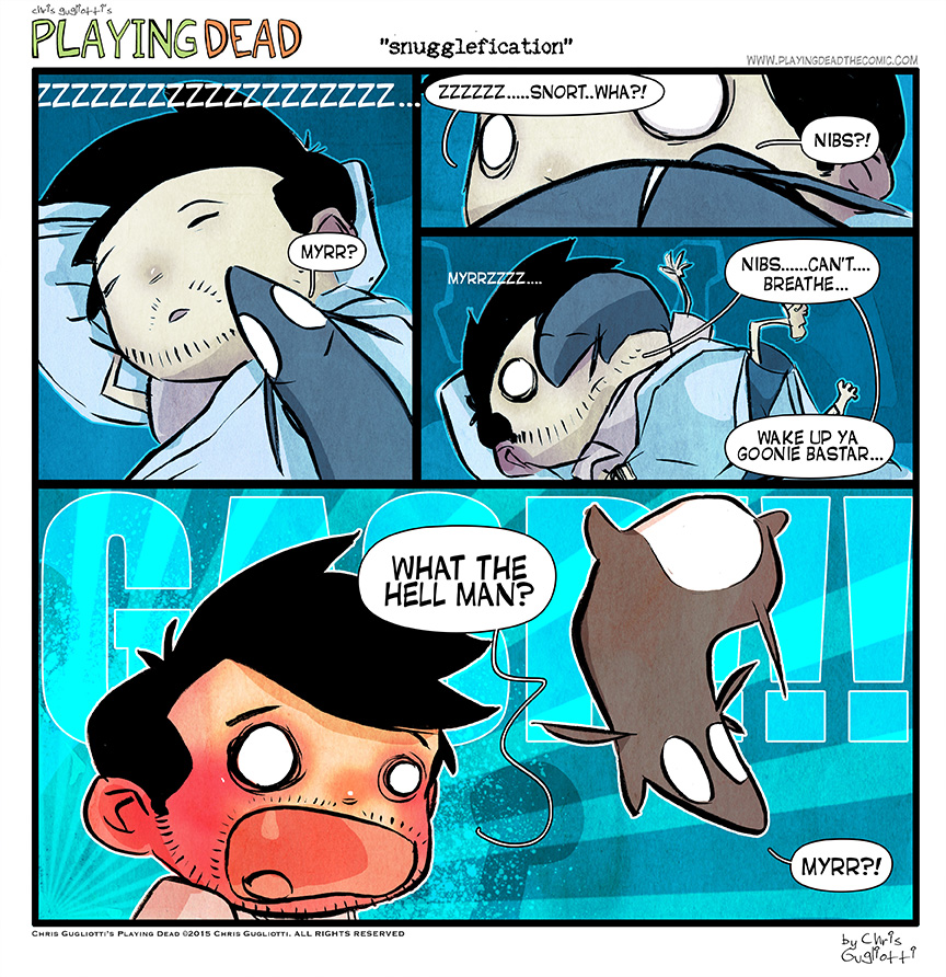 Snugglefication by cgugliotti on November 17, 2015 at 9:00 am Chapter: comics In which love knows no personal space. └ Tags: anxiety, autobiographical, chris gugliotti, comic, comic strip, cuddle, dachshund, dog, doxie, friendship, introspection, life, man's best friend, nibbles, nibbles the dacshund, playing dead, sleep, sleeping, web comic, Web comics, webcomic, webcomics, wtf Comments Off on Snugglefication