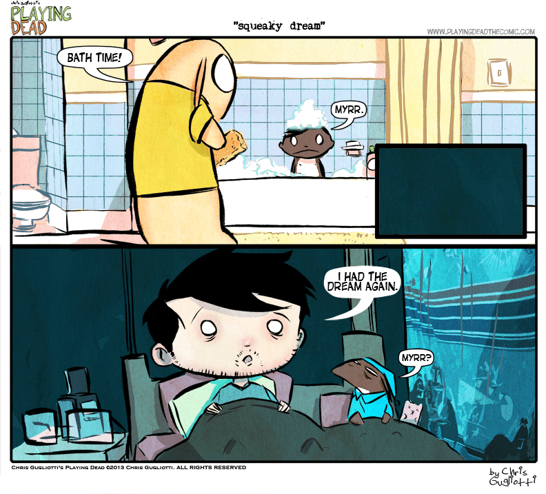 Squeaky Dream by cgugliotti on June 4, 2013 at 7:44 am Chapter: comics In which thinks get surreal. └ Tags: Animated, anxiety, autobiographical, chris gugliotti, comic, comic strip, dachshund, dog, dream, dreams, friendship, Gif, introspection, life, man's best friend, man-child, mr bear, nibbles, nightmares, playing dead, web comic, webcomic, wtf Comments Off on Squeaky Dream