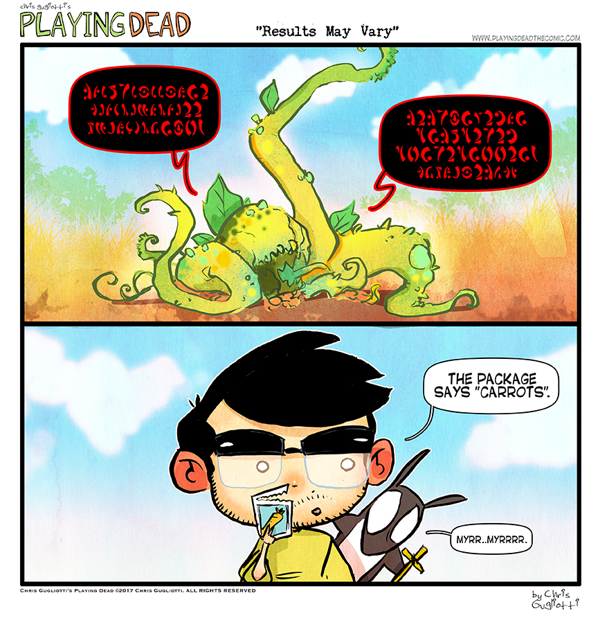 Results May Vary by cgugliotti on June 21, 2017 at 9:00 am Chapter: comicsCharacters: chris, nibbles In which perhaps we over watered. └ Tags: anxiety, autobiographical, chris gugliotti, comic, comic strip, dachshund, dog, friendship, garden, gardening, horror, introspection, life, man's best friend, monster, nibbles, nibbles the dachshund, plant, plants, playing dead, science fiction, web comic, Web comics, webcomic, wtf Comments Off on Results May Vary
