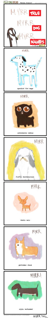 Nibbles Presents: by cgugliotti on November 17, 2016 at 9:00 am Chapter: comicsCharacters: nibbles TRUE DOG NAMES └ Tags: autobiographical, chihuahua, chris gugliotti, comic, comic strip, corg, corgi, dachshund, dalmation, dog, dog breeds, life, man's best friend, nibbles, nibbles the dachshund, playing dead, pug, sheep dog, web comic, Web comics, webcomic, webcomics Comments Off on Nibbles Presents: