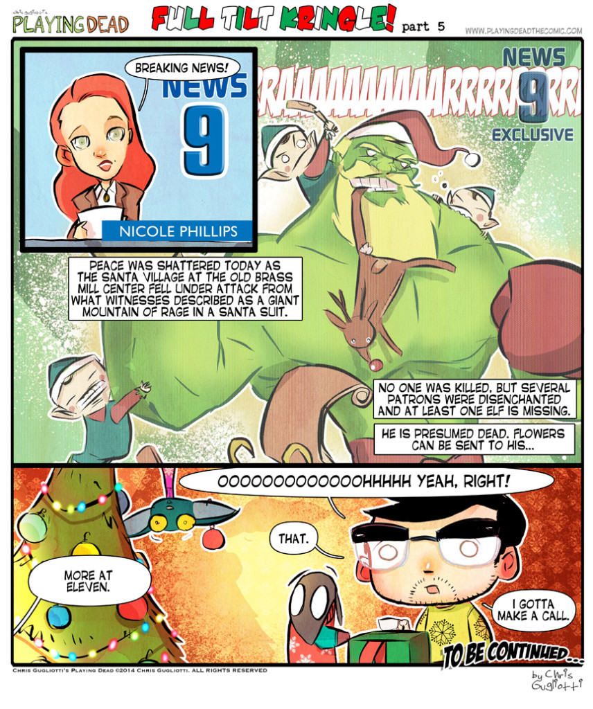 FULL TILT KRINGLE part 5 by cgugliotti on December 16, 2014 at 9:07 am Chapter: comics In which we are clearly slow to respond. └ Tags: autobiographical, chris gugliotti, christmas, christmas adventure, christmas tree, comic, comic strip, dachshund, dog, elves, friendship, holiday, holidays, life, magic, man's best friend, man-child, nibbles, playing dead, santa, santa claus, science fiction, snow, taylor swift, web comic, Web comics, webcomic, webcomics, xmas Comments Off on FULL TILT KRINGLE part 5