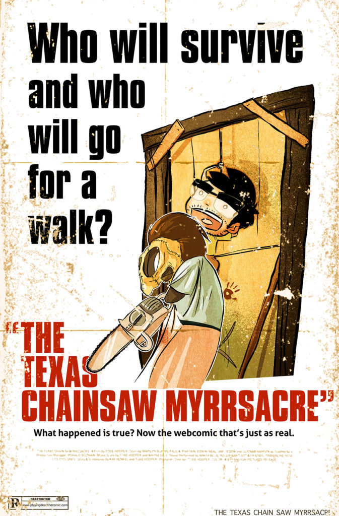 Texas Chainsaw Myrrsacre by cgugliotti on October 11, 2017 at 9:00 am Chapter: comicsCharacters: chris, nibbles SPOOKTACULAR 2017 continues! └ Tags: chris gugliotti, comic, comic strip, cosplay, dachshund, dog, fantasy, HALLOWEEN, halloween adventure, horror, horror movie, horror movie parody, horror movies, leatherface, man's best friend, movies, nibbles, nibbles the dachshund, playing dead, texas chainsaw massacre, tobe hooper, web comic, Web comics, webcomic, webcomics, wtf Comments Off on Texas Chainsaw Myrrsacre