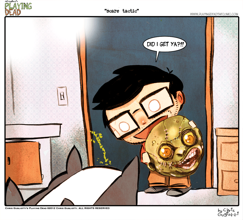Scare-tactic by cgugliotti on October 10, 2012 at 7:58 am Chapter: comics In which we learn that at some point everyone…….BOO!! └ Tags: Animated, autobiographical, chris gugliotti, comic, comic strip, dacshund, dog, friendship, fright, Gif, HALLOWEEN, man's best friend, man-child, MASK, nibbles, pee, pee your pants, prank, scare, scared, trick, web comic, webcomic Comments Off on Scare-tactic